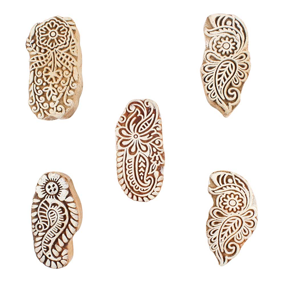 Set of 5 Piece New Mix Wooden Printing Blocks. Ideal for use on Fabric, Paper, Canvas, etc. These Blocks can be use to Print with Oil Colors, Fabric Colors, Water Colors, Acrylic Colors and Vegetable Colors.