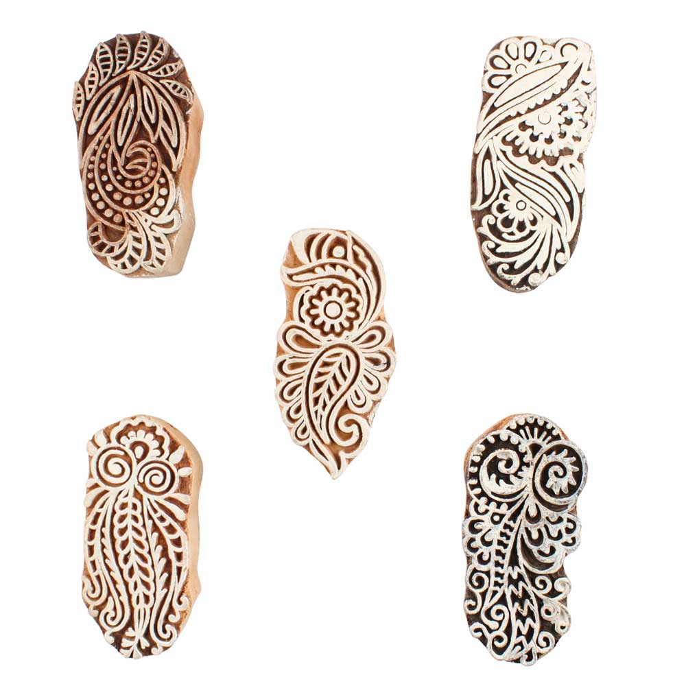 Set of 5 Piece New Mix Wooden Printing Blocks. Ideal for use on Fabric, Paper, Canvas, etc. These Blocks can be use to Print with Oil Colors, Fabric Colors, Water Colors, Acrylic Colors and Vegetable Colors.