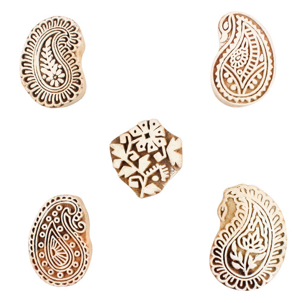 Set of 5 Piece New Mix Wooden Printing Blocks. Ideal for use on Fabric, Paper, Canvas, etc. These Blocks can be use to Print with Oil Colors, Fabric Colors, Water Colors, Acrylic Colors and Vegetable Colors.