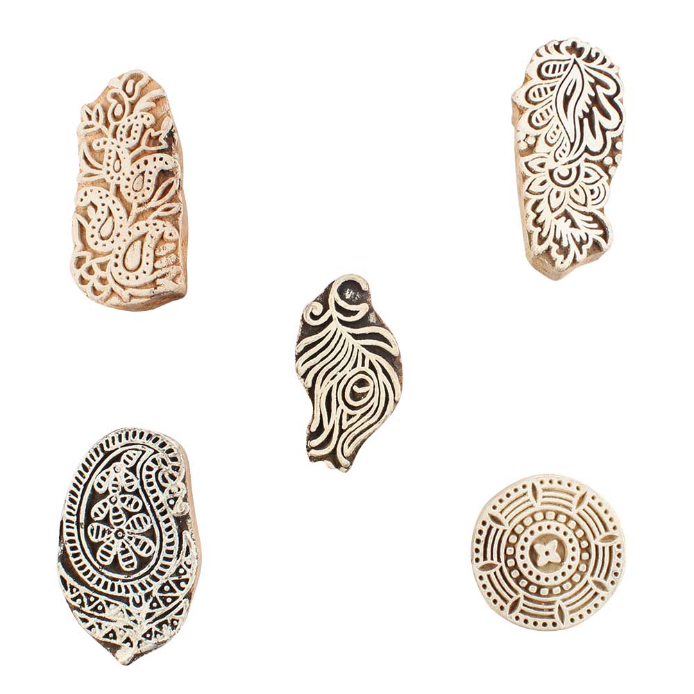 Set of 5 Piece New Mix Wooden Printing Blocks. Ideal for use on Fabric, Paper, Canvas, etc. These Blocks can be use to Print with Oil Colors, Fabric Colors, Water Colors, Acrylic Colors and Vegetable Colors.