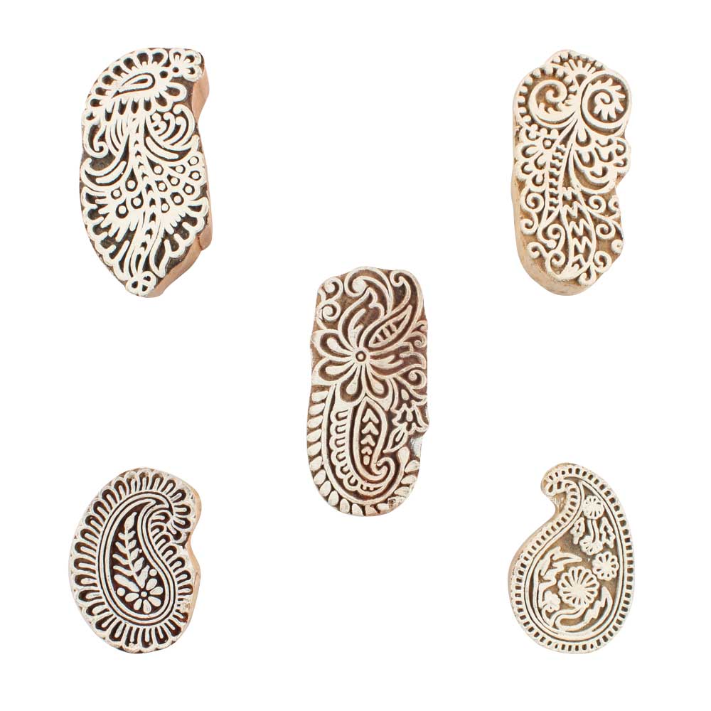 Set of 5 Piece New Mix Wooden Printing Blocks. Ideal for use on Fabric, Paper, Canvas, etc. These Blocks can be use to Print with Oil Colors, Fabric Colors, Water Colors, Acrylic Colors and Vegetable Colors.