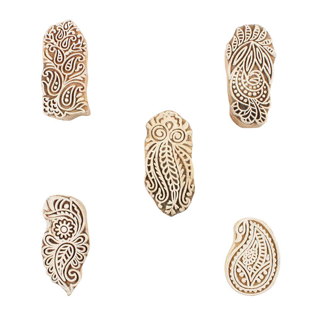 Set of 5 Piece New Mix Wooden Printing Blocks. Ideal for use on Fabric, Paper, Canvas, etc. These Blocks can be use to Print with Oil Colors, Fabric Colors, Water Colors, Acrylic Colors and Vegetable Colors.