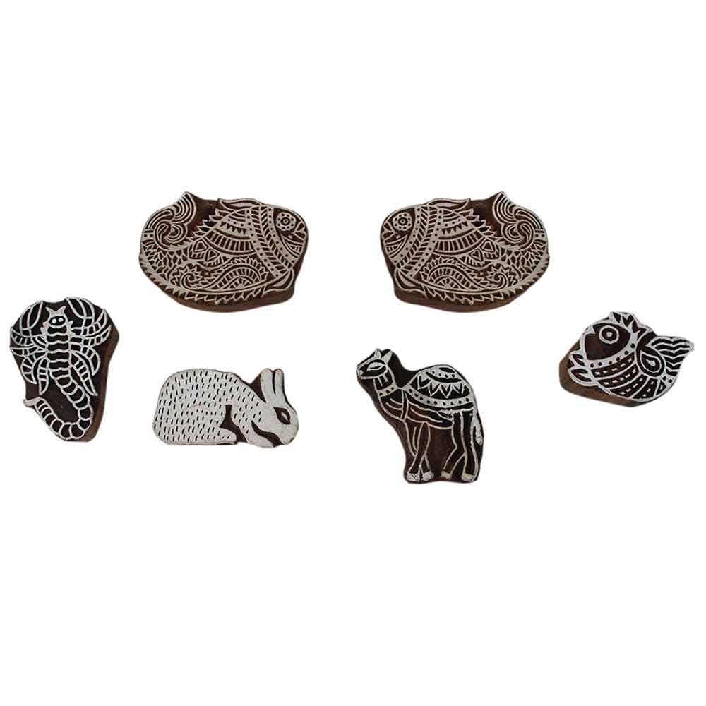Set of 6 Piece New Mix Wooden Printing Block. Ideal for Using on Fabric, Paper, Canvas, etc. These Blocks can be use to Print with Oil Colors, Fabric Colors, Water Colors, Acrylic Colors and Vegetable Colors.