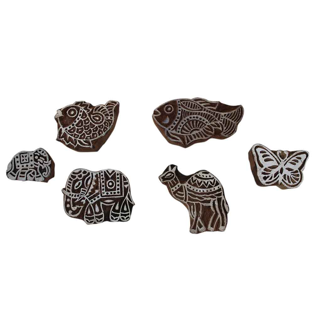 Set of 6 Piece New Mix Wooden Printing Block. Ideal for Using on Fabric, Paper, Canvas, etc. These Blocks can be use to Print with Oil Colors, Fabric Colors, Water Colors, Acrylic Colors and Vegetable Colors.
