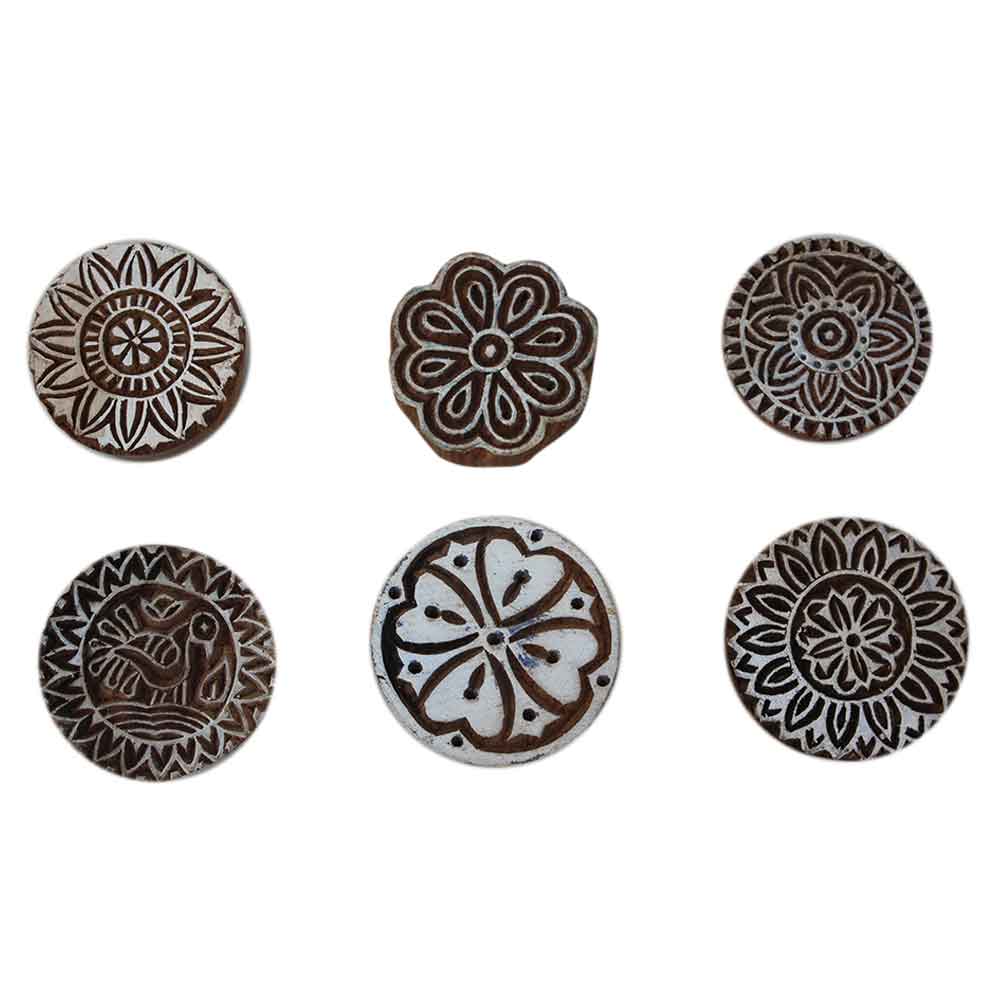 Set of 6 Piece New Mix Wooden Printing Block. Ideal for Using on Fabric, Paper, Canvas, etc. These Blocks can be use to Print with Oil Colors, Fabric Colors, Water Colors, Acrylic Colors and Vegetable Colors.