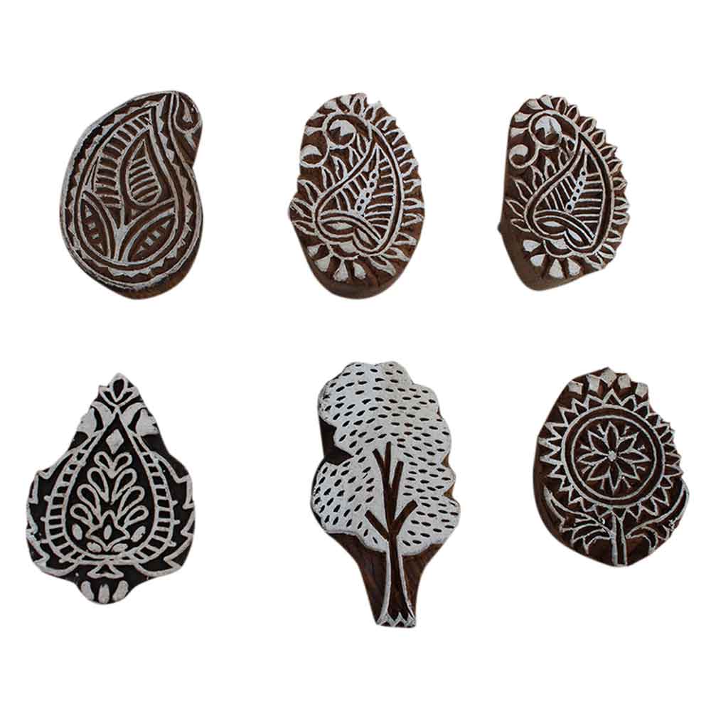 Set of 6 Piece New Mix Wooden Printing Block. Ideal for Using on Fabric, Paper, Canvas, etc. These Blocks can be use to Print with Oil Colors, Fabric Colors, Water Colors, Acrylic Colors and Vegetable Colors.