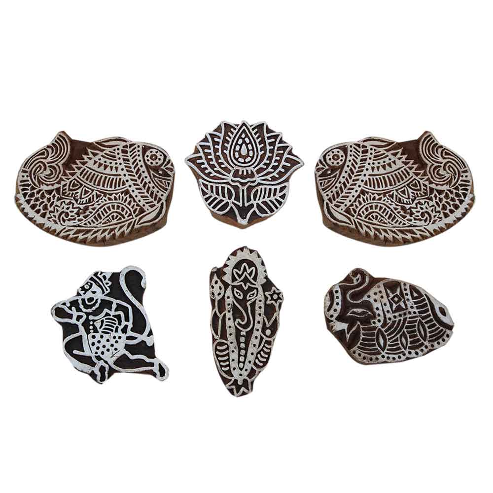 Set of 6 Piece New Mix Wooden Printing Block. Ideal for Using on Fabric, Paper, Canvas, etc. These Blocks can be use to Print with Oil Colors, Fabric Colors, Water Colors, Acrylic Colors and Vegetable Colors.