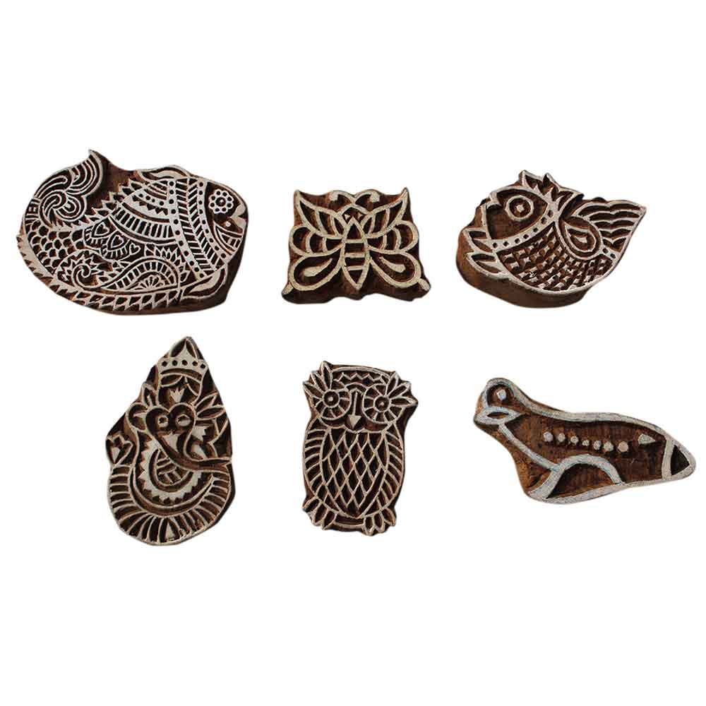 Set of 6 Piece New Mix Wooden Printing Block. Ideal for Using on Fabric, Paper, Canvas, etc. These Blocks can be use to Print with Oil Colors, Fabric Colors, Water Colors, Acrylic Colors and Vegetable Colors.