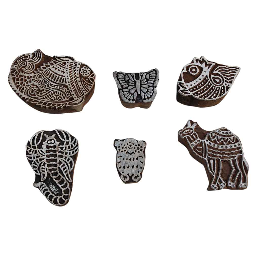 Set of 6 Piece New Mix Wooden Printing Block. Ideal for Using on Fabric, Paper, Canvas, etc. These Blocks can be use to Print with Oil Colors, Fabric Colors, Water Colors, Acrylic Colors and Vegetable Colors.