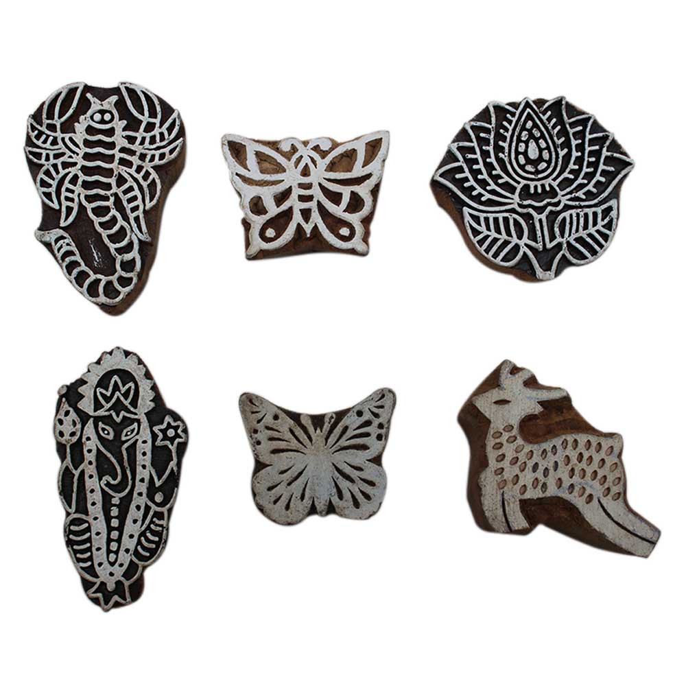 Set of 6 Piece New Mix Wooden Printing Block. Ideal for Using on Fabric, Paper, Canvas, etc. These Blocks can be use to Print with Oil Colors, Fabric Colors, Water Colors, Acrylic Colors and Vegetable Colors.
