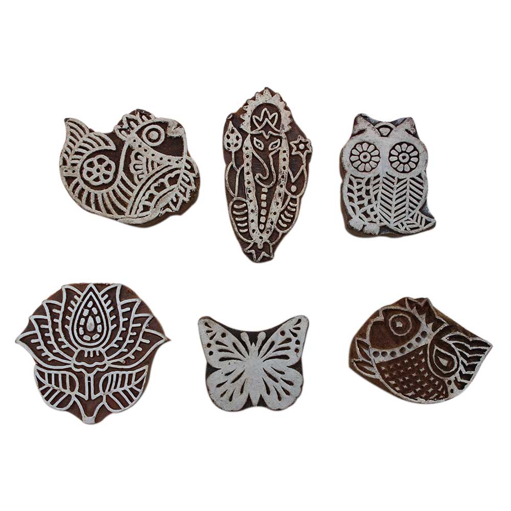 Set of 6 Piece New Mix Wooden Printing Block. Ideal for Using on Fabric, Paper, Canvas, etc. These Blocks can be use to Print with Oil Colors, Fabric Colors, Water Colors, Acrylic Colors and Vegetable Colors.