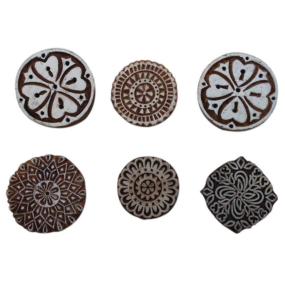 Set of 6 Piece New Mix Wooden Printing Block. Ideal for Using on Fabric, Paper, Canvas, etc. These Blocks can be use to Print with Oil Colors, Fabric Colors, Water Colors, Acrylic Colors and Vegetable Colors.