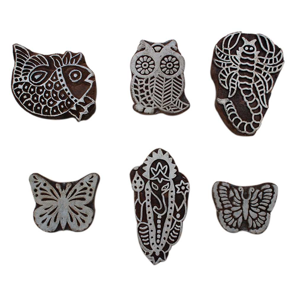 Set of 6 Piece New Mix Wooden Printing Block. Ideal for Using on Fabric, Paper, Canvas, etc. These Blocks can be use to Print with Oil Colors, Fabric Colors, Water Colors, Acrylic Colors and Vegetable Colors.