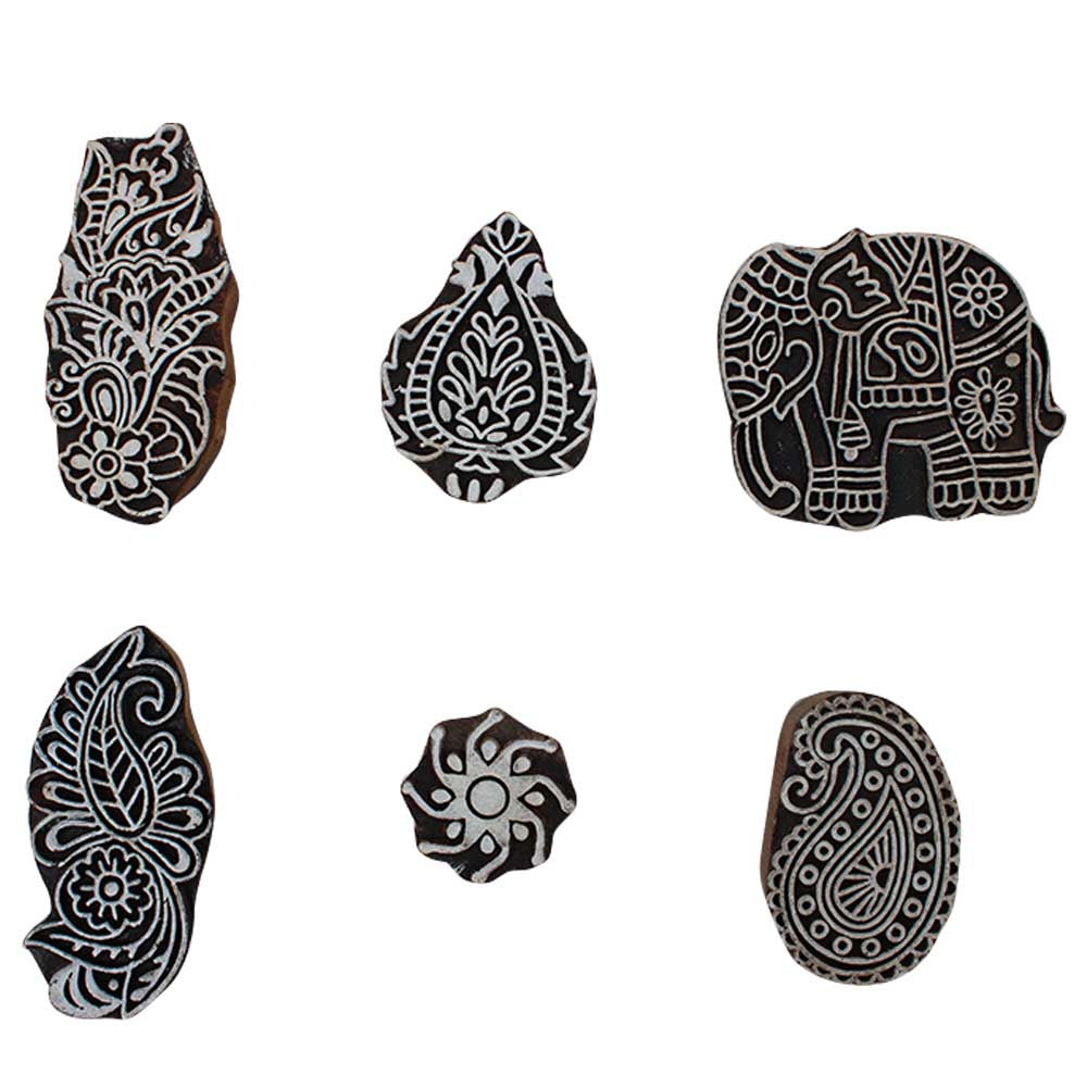 Set of 6 Piece New Mix Wooden Printing Block. Ideal for Using on Fabric, Paper, Canvas, etc. These Blocks can be use to Print with Oil Colors, Fabric Colors, Water Colors, Acrylic Colors and Vegetable Colors.