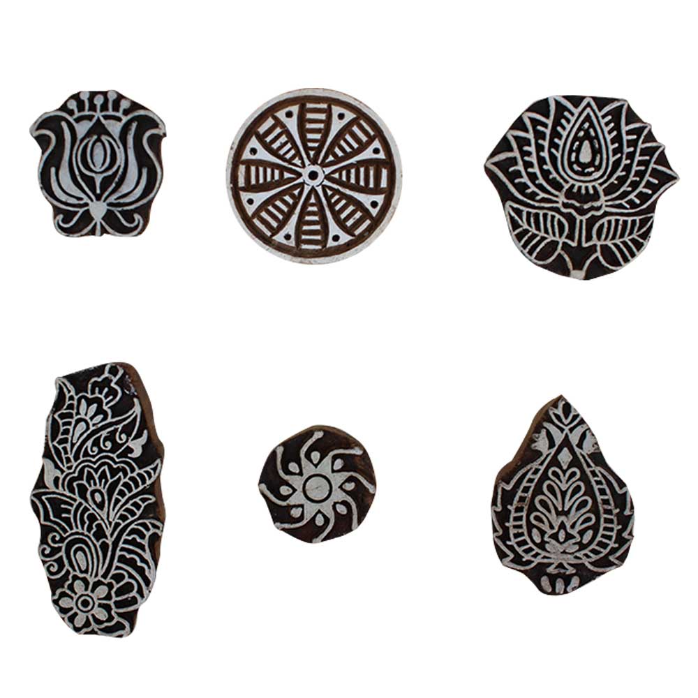 Set of 6 Piece New Mix Wooden Printing Block. Ideal for Using on Fabric, Paper, Canvas, etc. These Blocks can be use to Print with Oil Colors, Fabric Colors, Water Colors, Acrylic Colors and Vegetable Colors.
