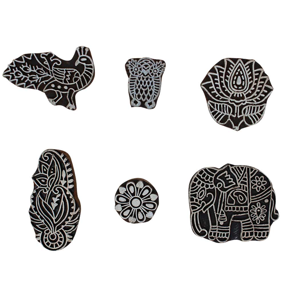 Set of 6 Piece New Mix Wooden Printing Block. Ideal for Using on Fabric, Paper, Canvas, etc. These Blocks can be use to Print with Oil Colors, Fabric Colors, Water Colors, Acrylic Colors and Vegetable Colors.