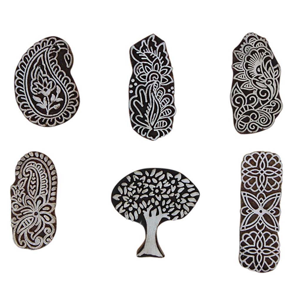 Set of 6 Piece New Mix Wooden Printing Block. Ideal for Using on Fabric, Paper, Canvas, etc. These Blocks can be use to Print with Oil Colors, Fabric Colors, Water Colors, Acrylic Colors and Vegetable Colors.