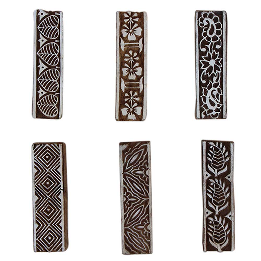 Set of 6 Piece New Mix Wooden Printing Block. Ideal for Using on Fabric, Paper, Canvas, etc. These Blocks can be use to Print with Oil Colors, Fabric Colors, Water Colors, Acrylic Colors and Vegetable Colors.