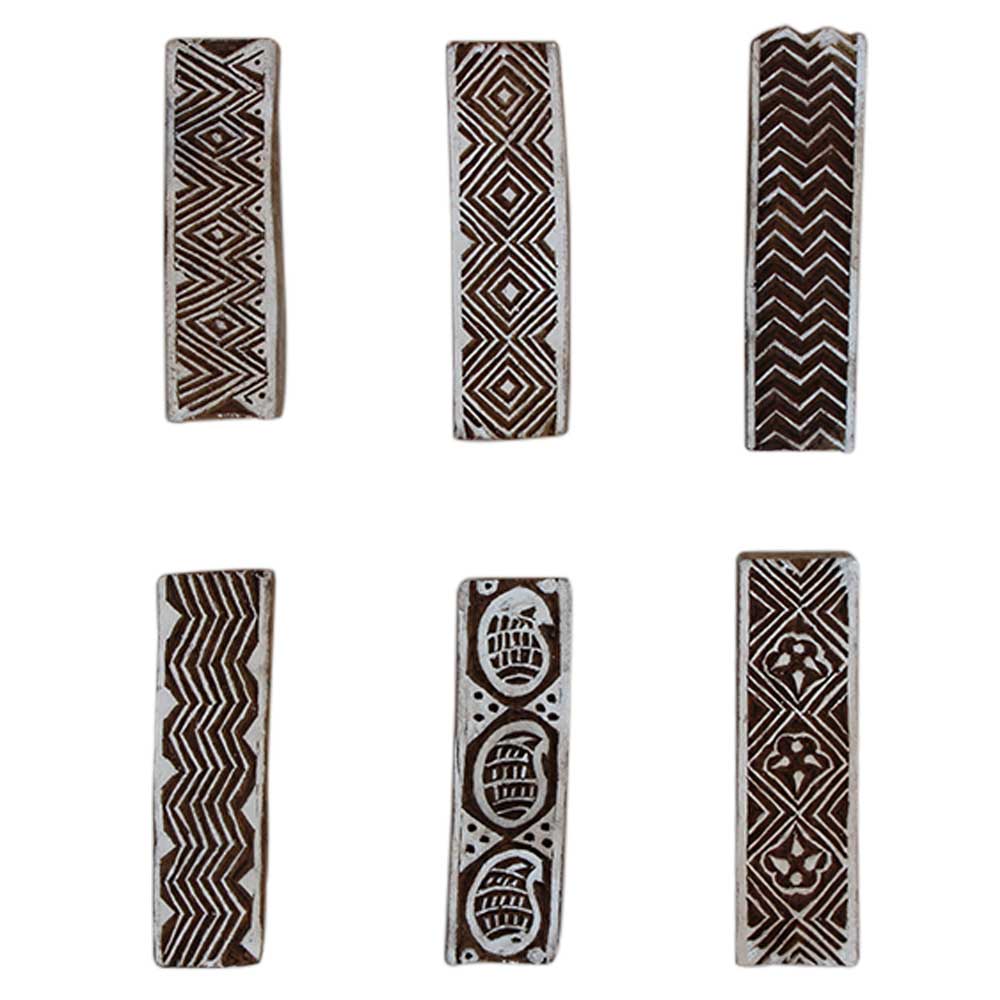 Set of 6 Piece New Mix Wooden Printing Block. Ideal for Using on Fabric, Paper, Canvas, etc. These Blocks can be use to Print with Oil Colors, Fabric Colors, Water Colors, Acrylic Colors and Vegetable Colors.
