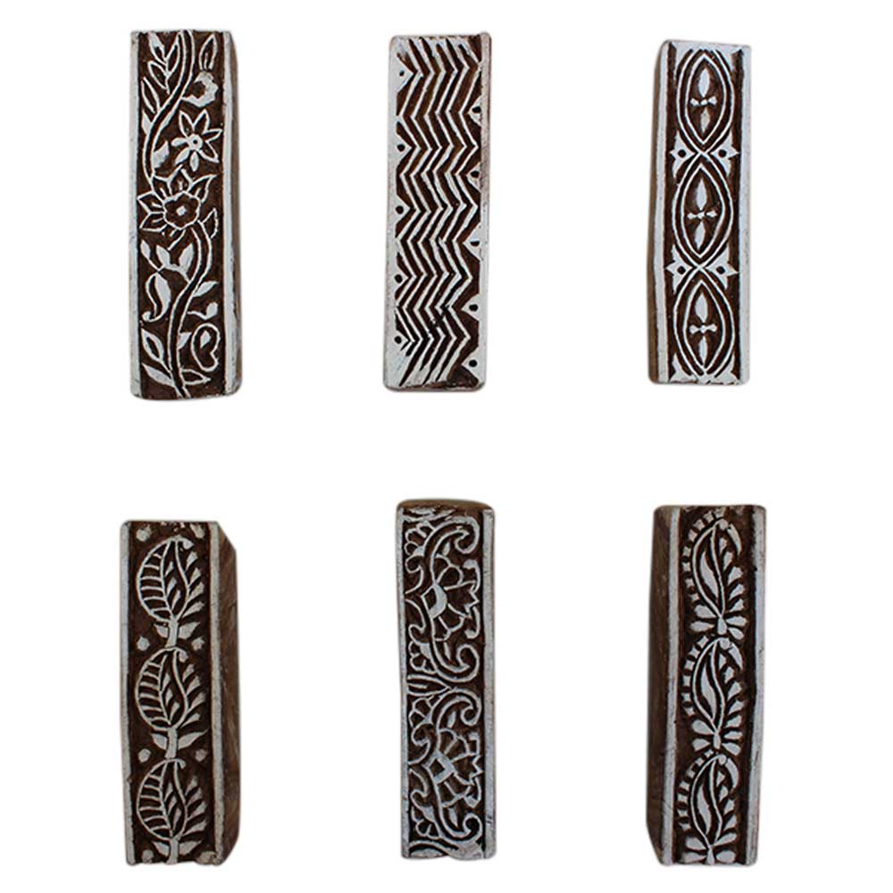 Set of 6 Piece New Mix Wooden Printing Block. Ideal for Using on Fabric, Paper, Canvas, etc. These Blocks can be use to Print with Oil Colors, Fabric Colors, Water Colors, Acrylic Colors and Vegetable Colors.
