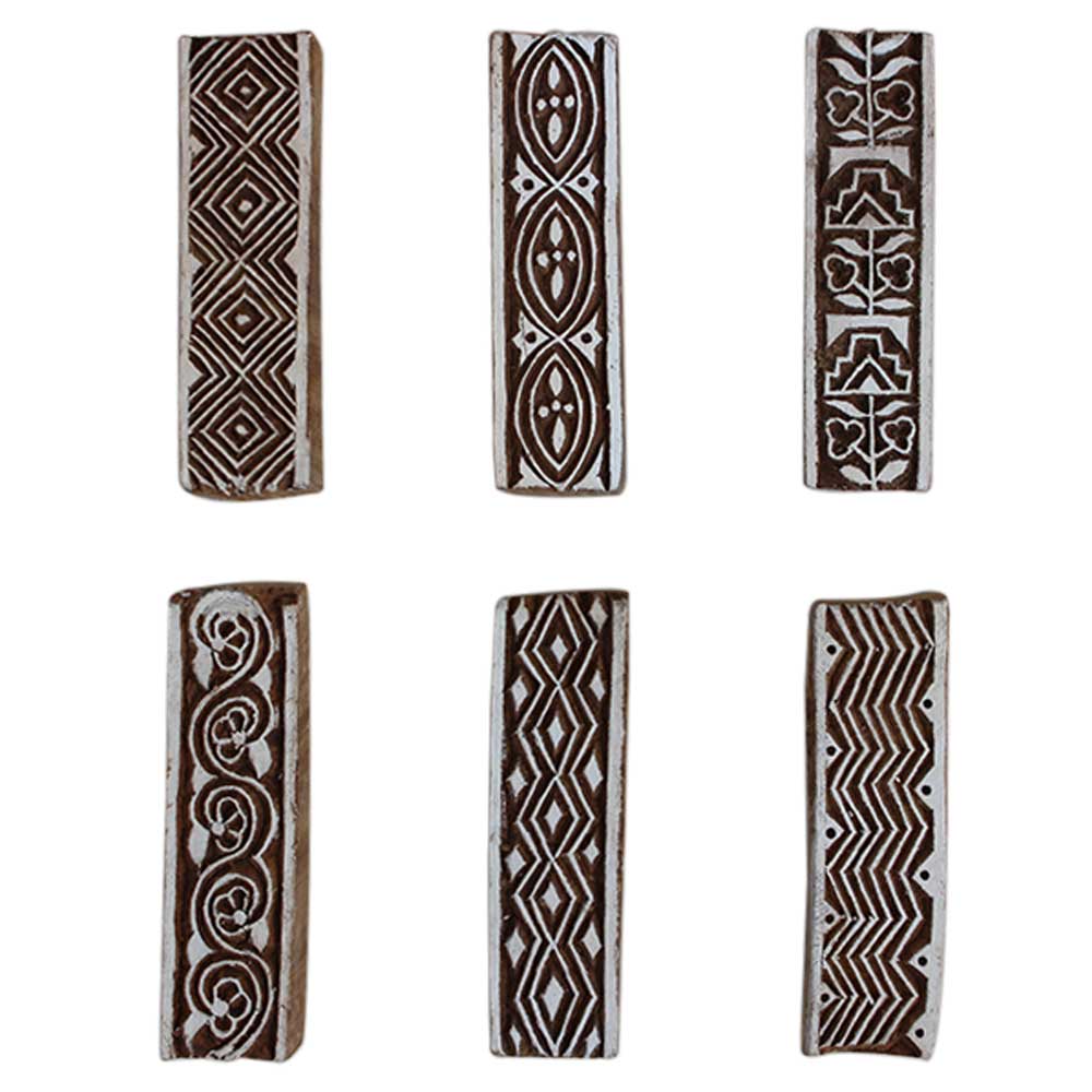 Set of 6 Piece New Mix Wooden Printing Block. Ideal for Using on Fabric, Paper, Canvas, etc. These Blocks can be use to Print with Oil Colors, Fabric Colors, Water Colors, Acrylic Colors and Vegetable Colors.