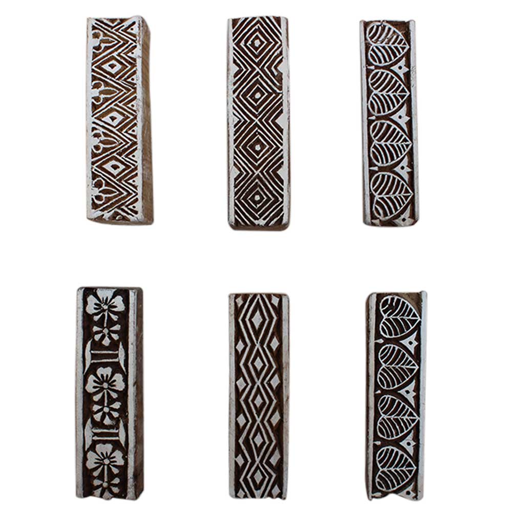 Set of 6 Piece New Mix Wooden Printing Block. Ideal for Using on Fabric, Paper, Canvas, etc. These Blocks can be use to Print with Oil Colors, Fabric Colors, Water Colors, Acrylic Colors and Vegetable Colors.