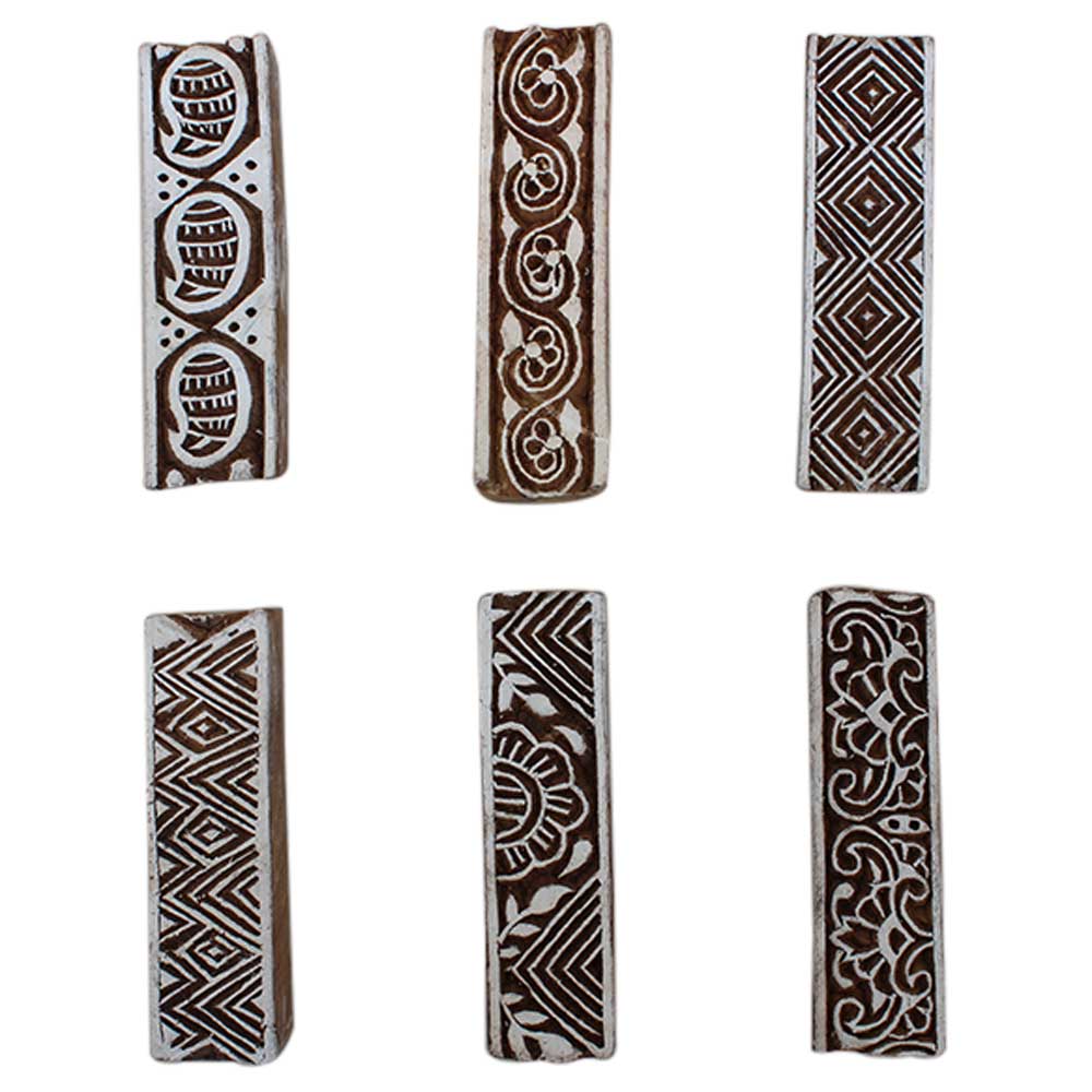 Set of 6 Piece New Mix Wooden Printing Block. Ideal for Using on Fabric, Paper, Canvas, etc. These Blocks can be use to Print with Oil Colors, Fabric Colors, Water Colors, Acrylic Colors and Vegetable Colors.