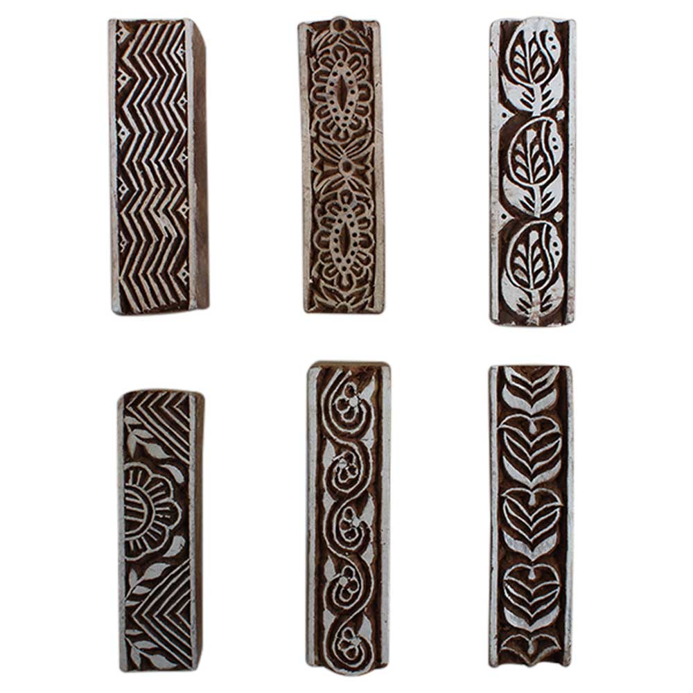 Set of 6 Piece New Mix Wooden Printing Block. Ideal for Using on Fabric, Paper, Canvas, etc. These Blocks can be use to Print with Oil Colors, Fabric Colors, Water Colors, Acrylic Colors and Vegetable Colors.