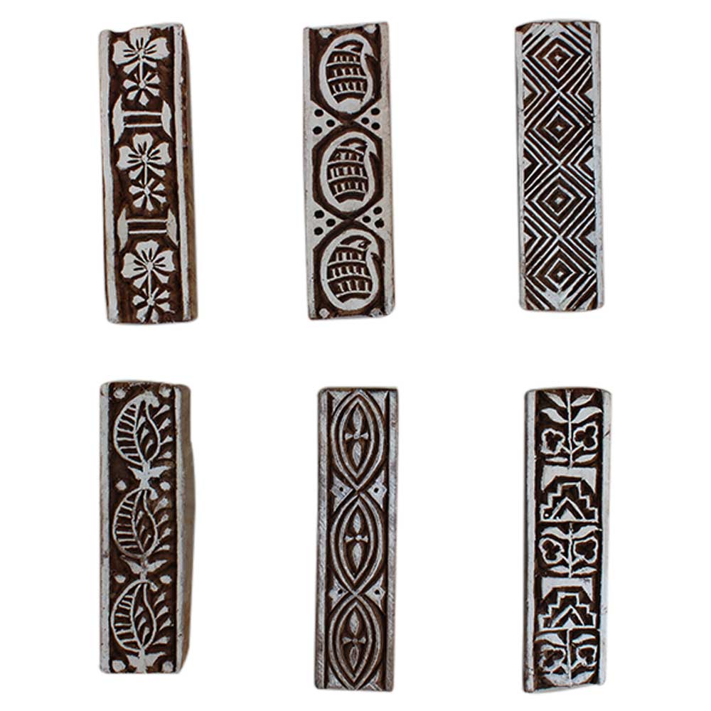 Set of 6 Piece New Mix Wooden Printing Block. Ideal for Using on Fabric, Paper, Canvas, etc. These Blocks can be use to Print with Oil Colors, Fabric Colors, Water Colors, Acrylic Colors and Vegetable Colors.