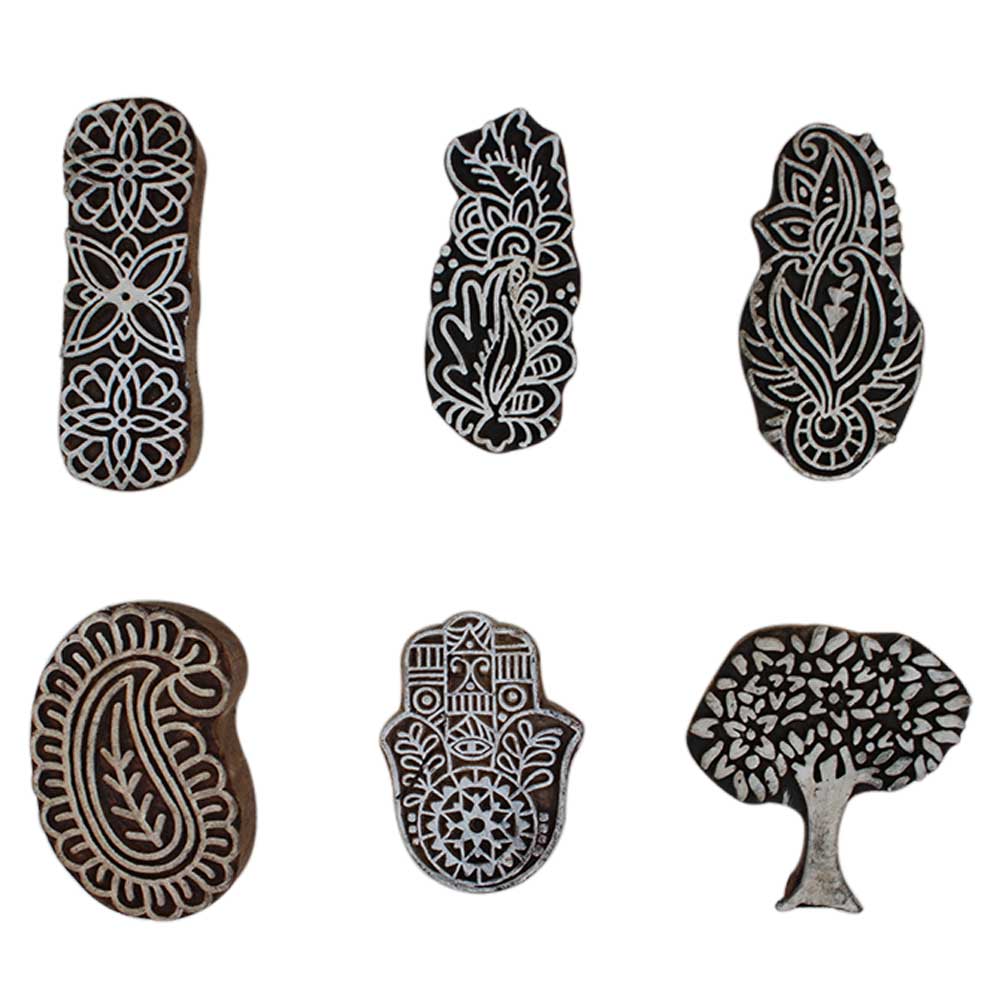 Set of 6 Piece New Mix Wooden Printing Block. Ideal for Using on Fabric, Paper, Canvas, etc. These Blocks can be use to Print with Oil Colors, Fabric Colors, Water Colors, Acrylic Colors and Vegetable Colors.