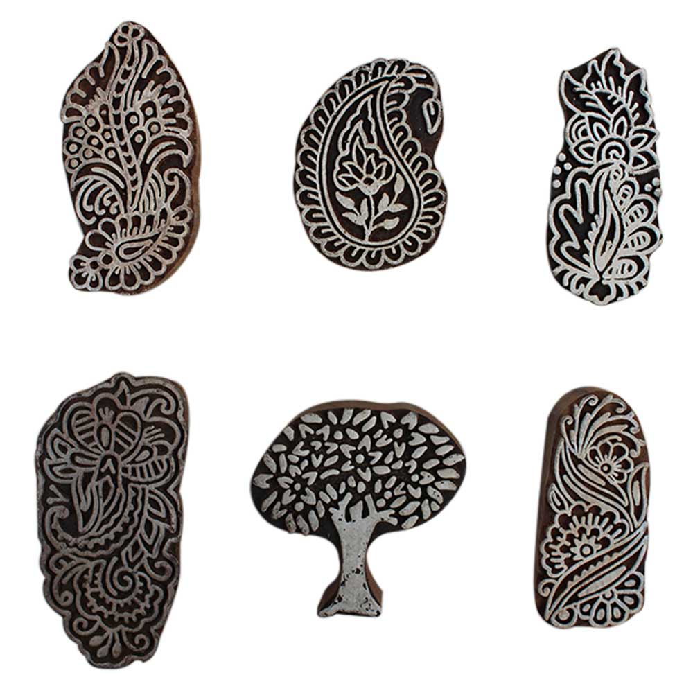 Set of 6 Piece New Mix Wooden Printing Block. Ideal for Using on Fabric, Paper, Canvas, etc. These Blocks can be use to Print with Oil Colors, Fabric Colors, Water Colors, Acrylic Colors and Vegetable Colors.