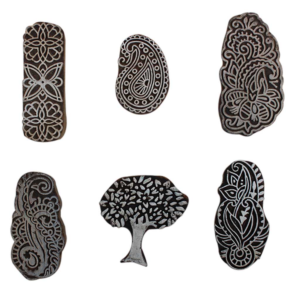 Set of 6 Piece New Mix Wooden Printing Block. Ideal for Using on Fabric, Paper, Canvas, etc. These Blocks can be use to Print with Oil Colors, Fabric Colors, Water Colors, Acrylic Colors and Vegetable Colors.