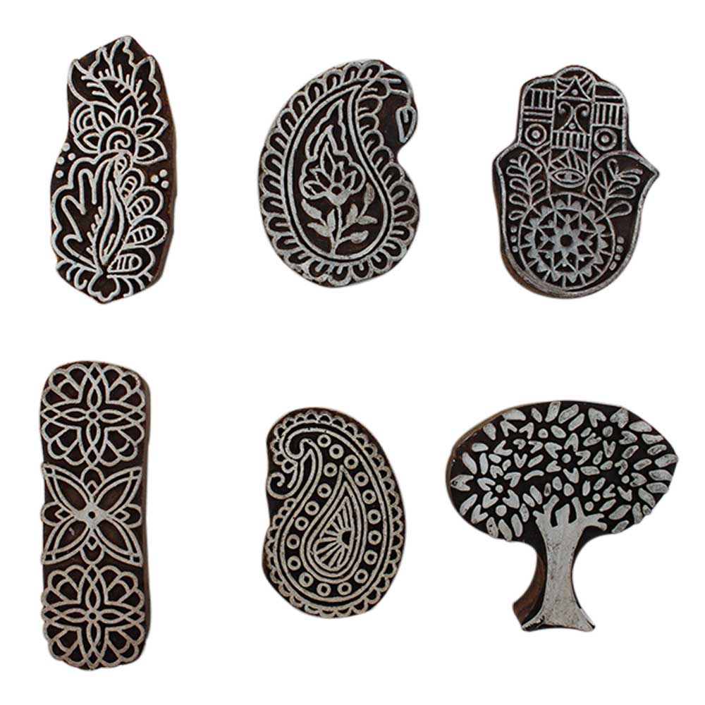 Set of 6 Piece New Mix Wooden Printing Block. Ideal for Using on Fabric, Paper, Canvas, etc. These Blocks can be use to Print with Oil Colors, Fabric Colors, Water Colors, Acrylic Colors and Vegetable Colors.