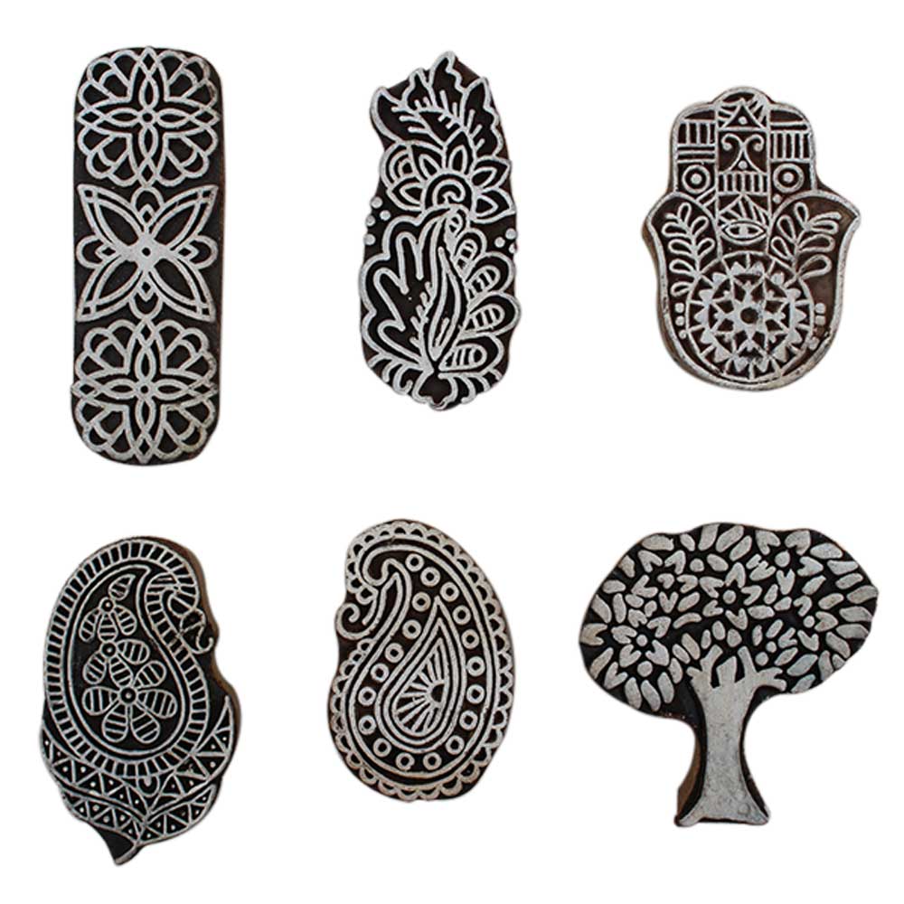 Set of 6 Piece New Mix Wooden Printing Block. Ideal for Using on Fabric, Paper, Canvas, etc. These Blocks can be use to Print with Oil Colors, Fabric Colors, Water Colors, Acrylic Colors and Vegetable Colors.