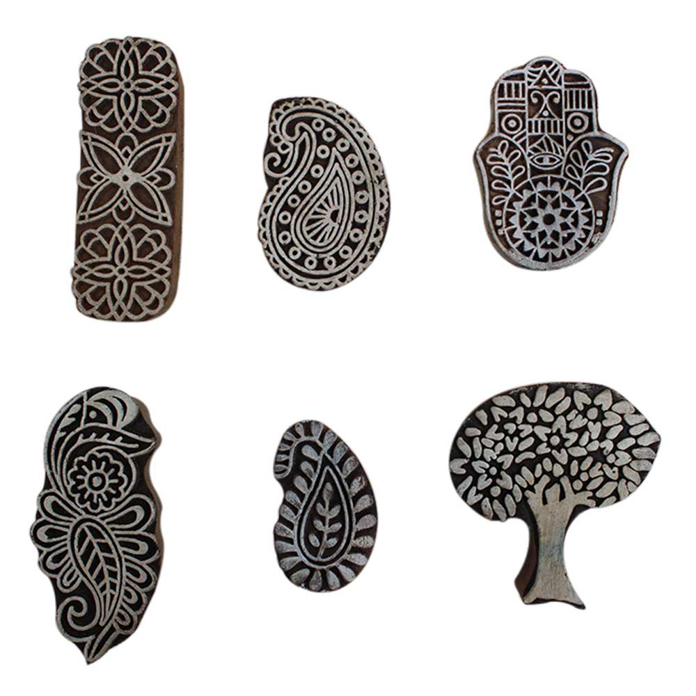 Set of 6 Piece New Mix Wooden Printing Block. Ideal for Using on Fabric, Paper, Canvas, etc. These Blocks can be use to Print with Oil Colors, Fabric Colors, Water Colors, Acrylic Colors and Vegetable Colors.