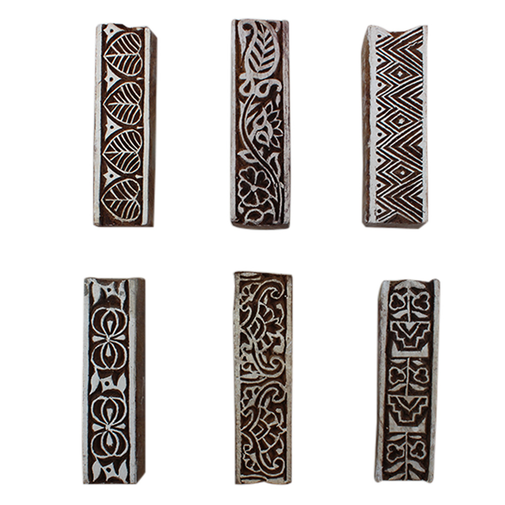 Set of 6 Piece New Mix Wooden Printing Block. Ideal for Using on Fabric, Paper, Canvas, etc. These Blocks can be use to Print with Oil Colors, Fabric Colors, Water Colors, Acrylic Colors and Vegetable Colors.