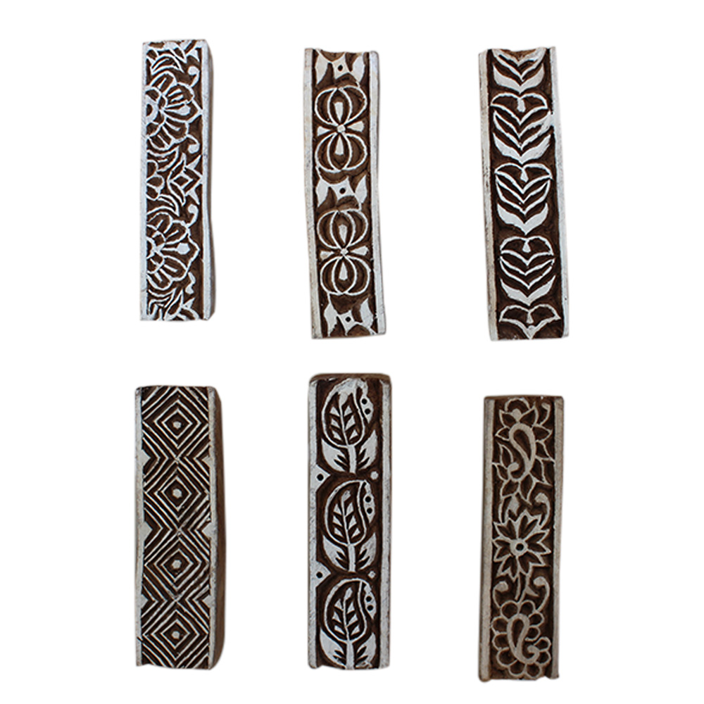 Set of 6 Piece New Mix Wooden Printing Block. Ideal for Using on Fabric, Paper, Canvas, etc. These Blocks can be use to Print with Oil Colors, Fabric Colors, Water Colors, Acrylic Colors and Vegetable Colors.
