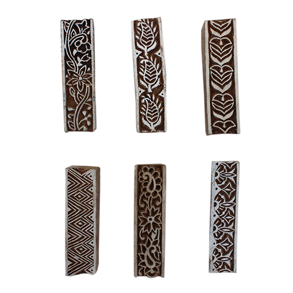 Set of 6 Piece New Mix Wooden Printing Block. Ideal for Using on Fabric, Paper, Canvas, etc. These Blocks can be use to Print with Oil Colors, Fabric Colors, Water Colors, Acrylic Colors and Vegetable Colors.