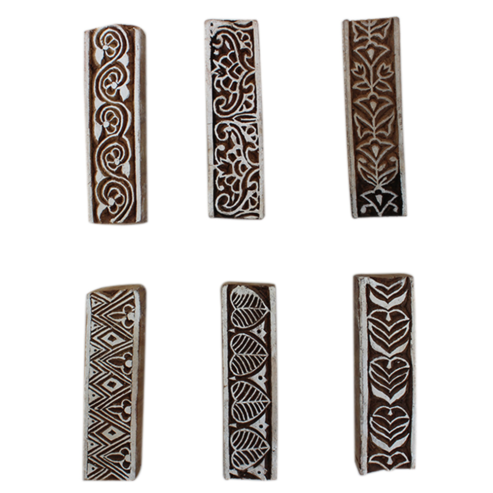 Set of 6 Piece New Mix Wooden Printing Block. Ideal for Using on Fabric, Paper, Canvas, etc. These Blocks can be use to Print with Oil Colors, Fabric Colors, Water Colors, Acrylic Colors and Vegetable Colors.