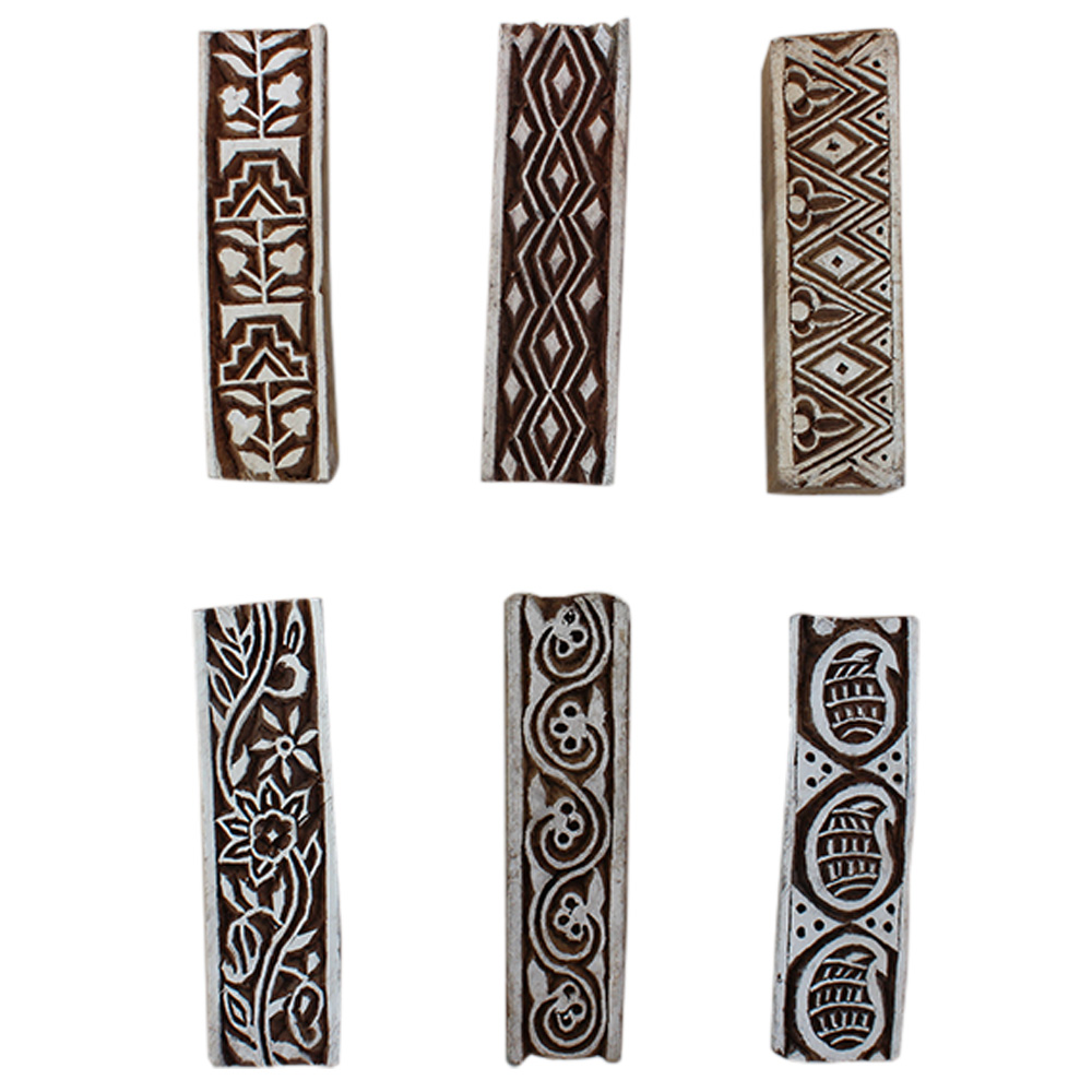 Set of 6 Piece New Mix Wooden Printing Block. Ideal for Using on Fabric, Paper, Canvas, etc. These Blocks can be use to Print with Oil Colors, Fabric Colors, Water Colors, Acrylic Colors and Vegetable Colors.