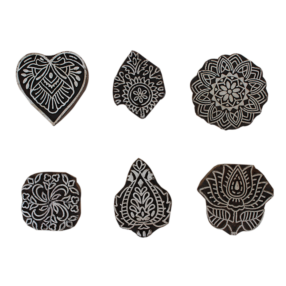 Set of 6 Piece New Mix Wooden Printing Block. Ideal for Using on Fabric, Paper, Canvas, etc. These Blocks can be use to Print with Oil Colors, Fabric Colors, Water Colors, Acrylic Colors and Vegetable Colors.