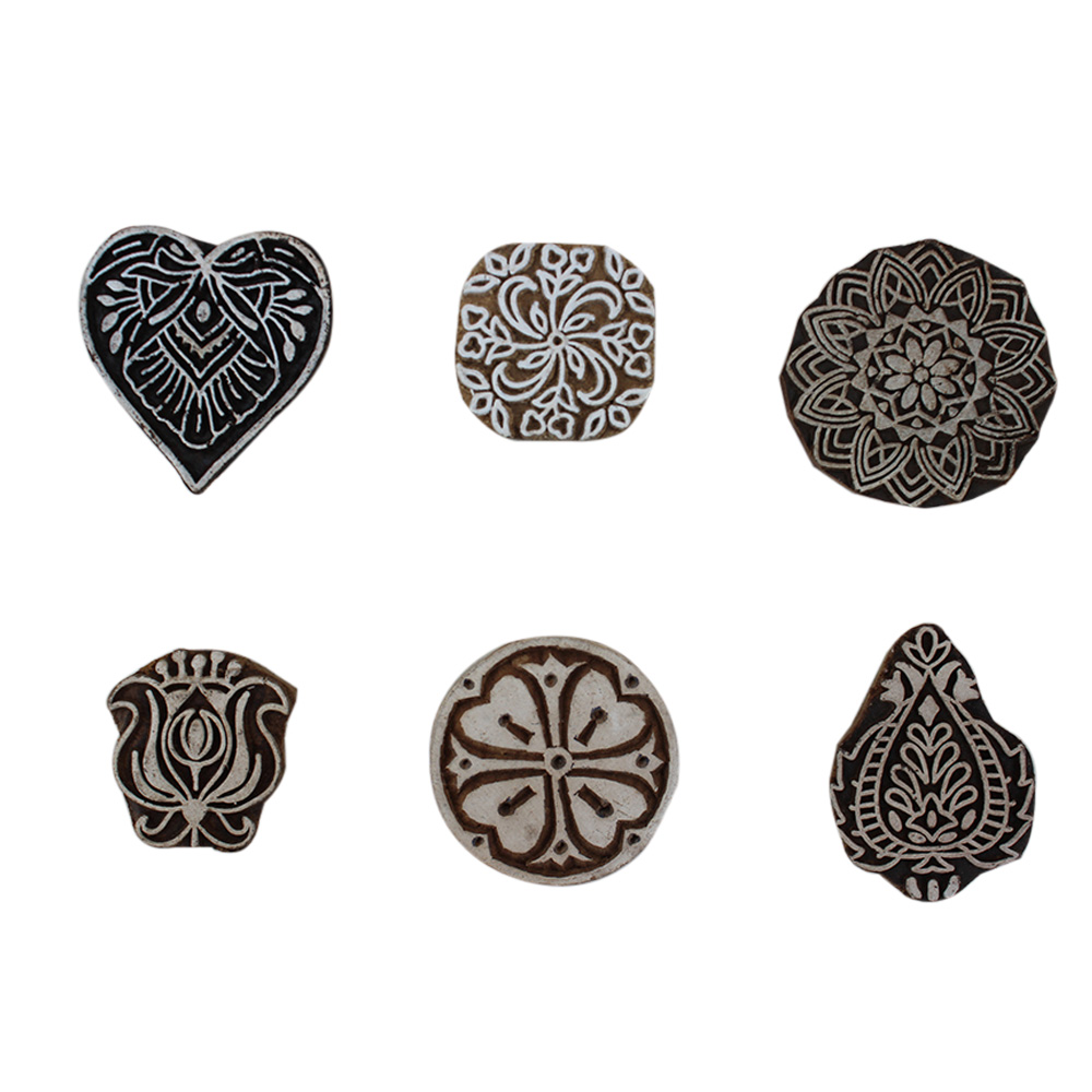 Set of 6 Piece New Mix Wooden Printing Block. Ideal for Using on Fabric, Paper, Canvas, etc. These Blocks can be use to Print with Oil Colors, Fabric Colors, Water Colors, Acrylic Colors and Vegetable Colors.