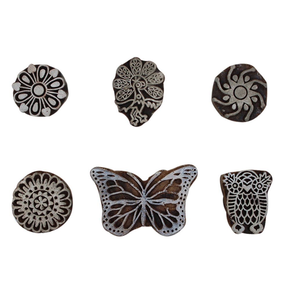 Set of 6 Piece New Mix Wooden Printing Block. Ideal for Using on Fabric, Paper, Canvas, etc. These Blocks can be use to Print with Oil Colors, Fabric Colors, Water Colors, Acrylic Colors and Vegetable Colors.