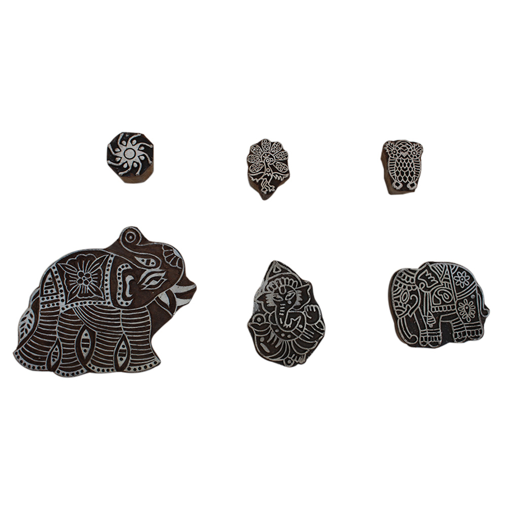 Set of 6 Piece New Mix Wooden Printing Block. Ideal for Using on Fabric, Paper, Canvas, etc. These Blocks can be use to Print with Oil Colors, Fabric Colors, Water Colors, Acrylic Colors and Vegetable Colors.