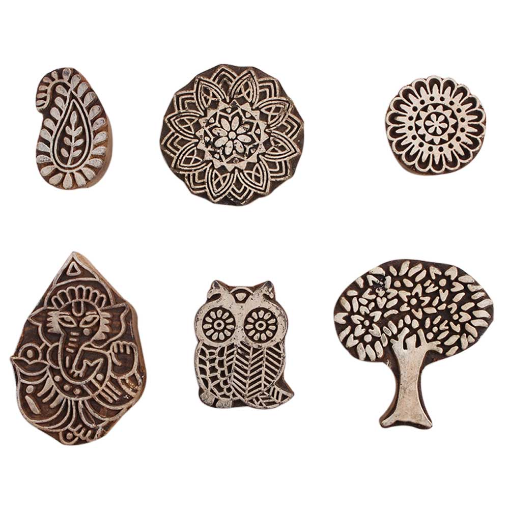Set of 6 Piece New Mix Wooden Printing Block. Ideal for Using on Fabric, Paper, Canvas, etc. These Blocks can be use to Print with Oil Colors, Fabric Colors, Water Colors, Acrylic Colors and Vegetable Colors.