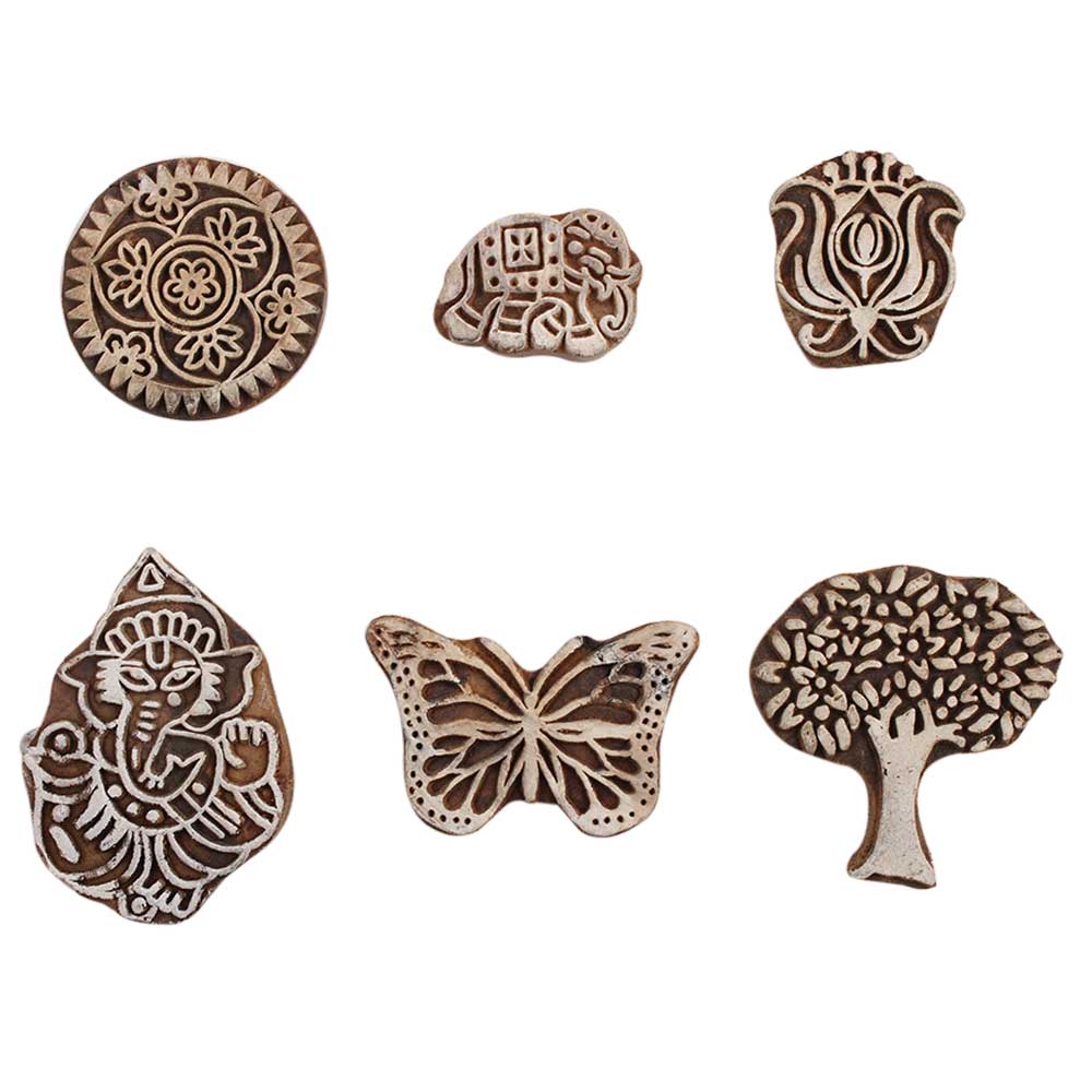 Set of 6 Piece New Mix Wooden Printing Block. Ideal for Using on Fabric, Paper, Canvas, etc. These Blocks can be use to Print with Oil Colors, Fabric Colors, Water Colors, Acrylic Colors and Vegetable Colors.