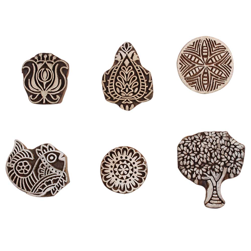 Set of 6 Piece New Mix Wooden Printing Block. Ideal for Using on Fabric, Paper, Canvas, etc. These Blocks can be use to Print with Oil Colors, Fabric Colors, Water Colors, Acrylic Colors and Vegetable Colors.