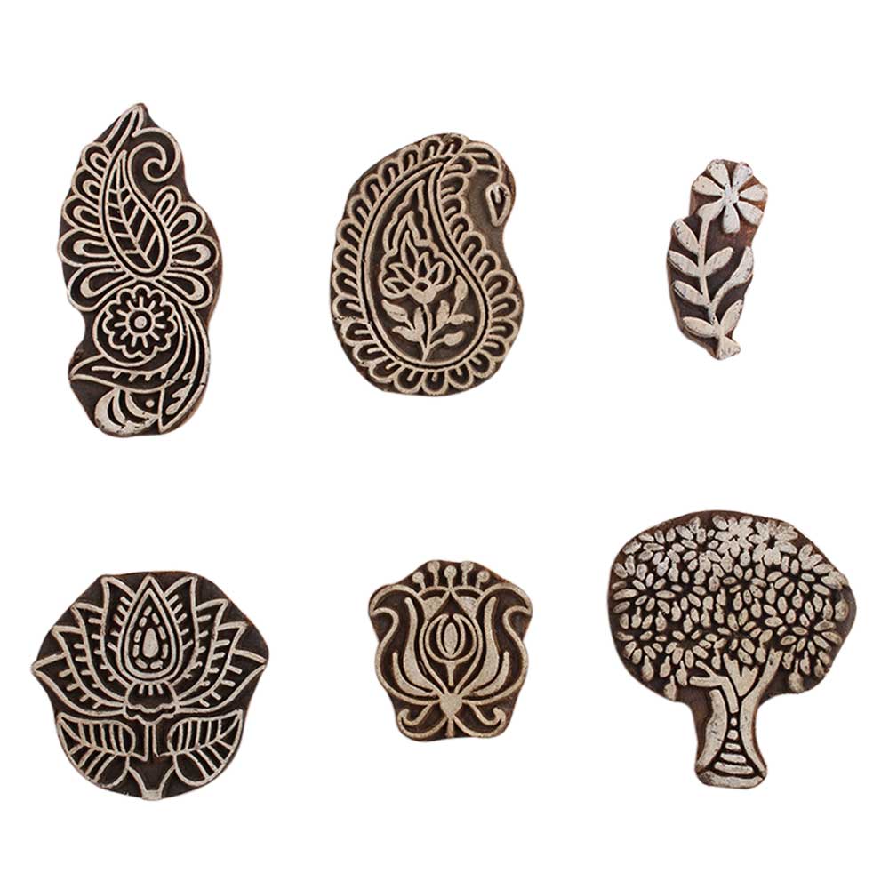 Set of 6 Piece New Mix Wooden Printing Block. Ideal for Using on Fabric, Paper, Canvas, etc. These Blocks can be use to Print with Oil Colors, Fabric Colors, Water Colors, Acrylic Colors and Vegetable Colors.