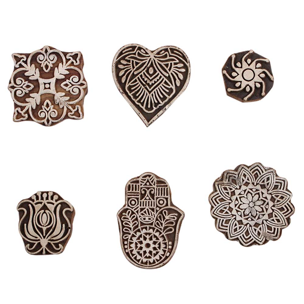 Set of 6 Piece New Mix Wooden Printing Block. Ideal for Using on Fabric, Paper, Canvas, etc. These Blocks can be use to Print with Oil Colors, Fabric Colors, Water Colors, Acrylic Colors and Vegetable Colors.