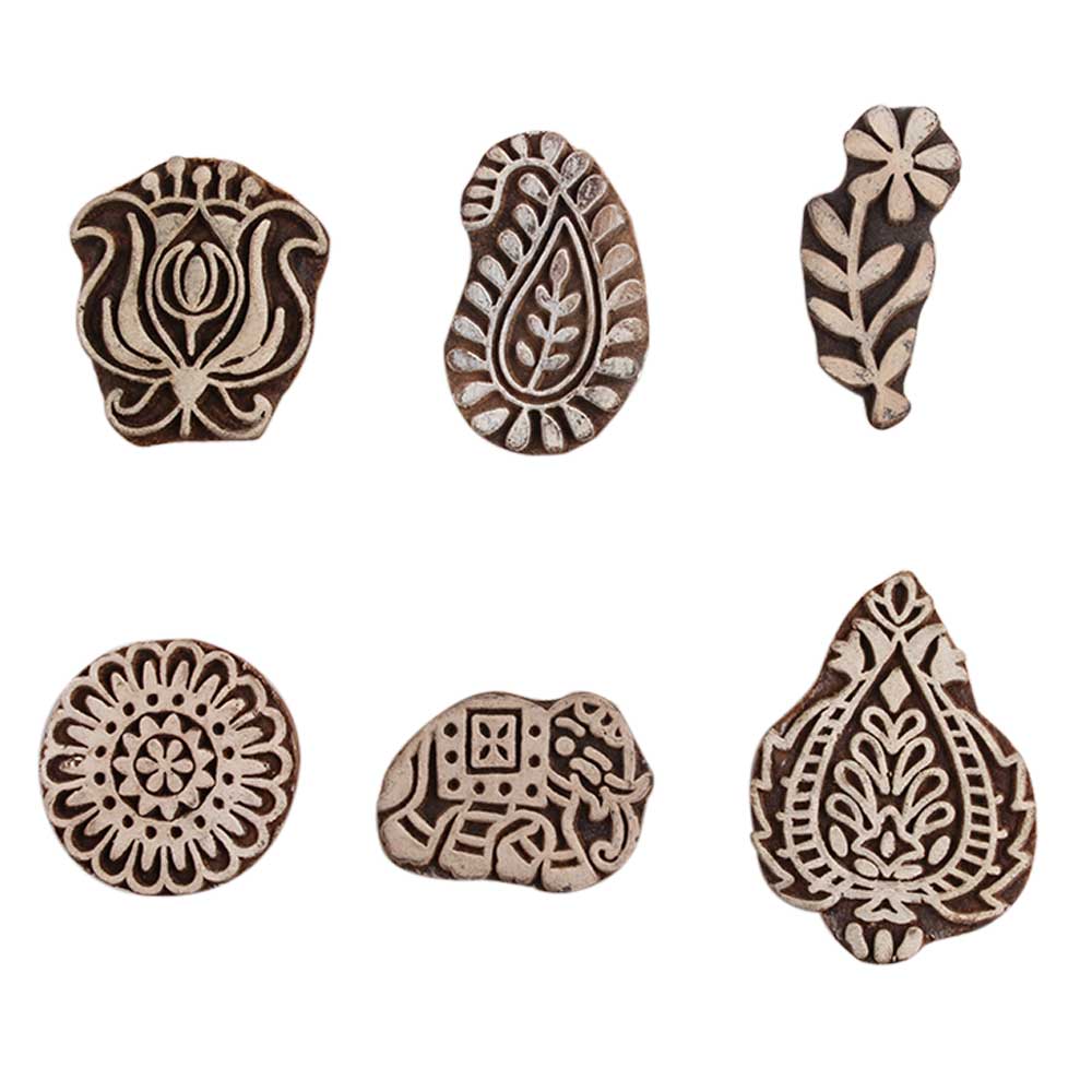 Set of 6 Piece New Mix Wooden Printing Block. Ideal for Using on Fabric, Paper, Canvas, etc. These Blocks can be use to Print with Oil Colors, Fabric Colors, Water Colors, Acrylic Colors and Vegetable Colors.
